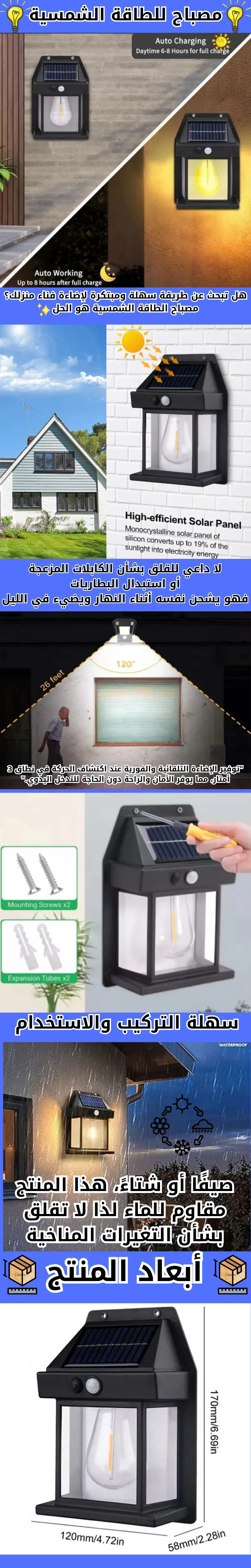 استمتع بإضاءة مبتكرة وآمنة للمساحات الخارجية مع مصباح الطاقة الشمسية، يعمل تلقائياً